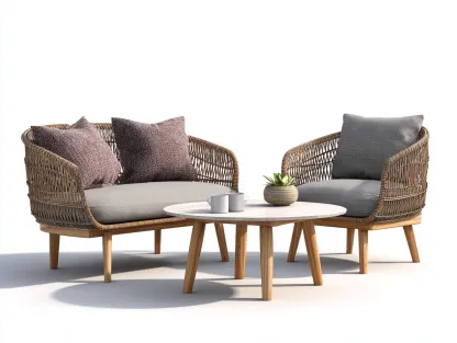 Canapé de jardin en résine tressée avec table basse 120x70x78 cm - Gris et bois naturel - Style naturel pour extérieur