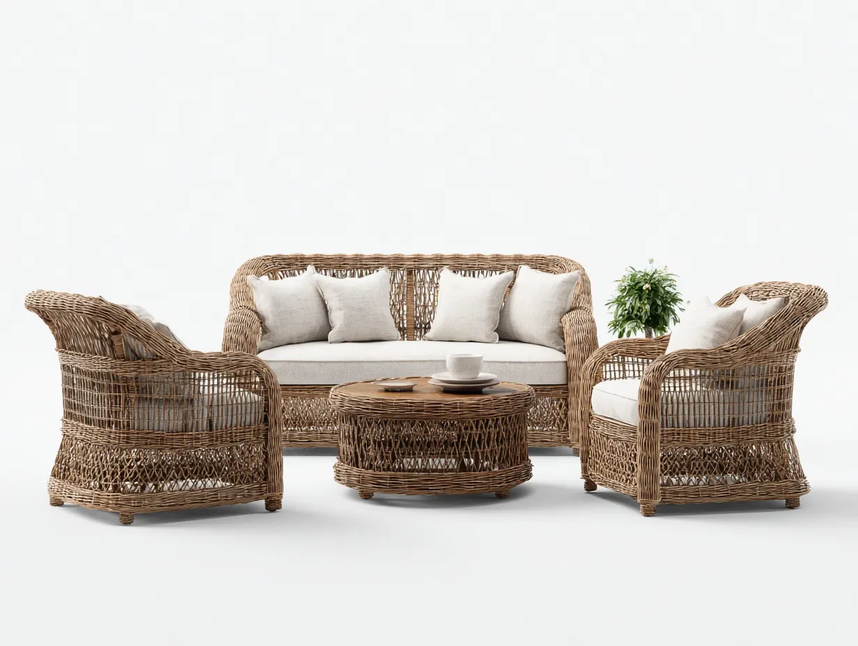 Canapé de jardin en résine tressée avec table basse 180x75x78 cm - Beige et bois naturel - Style naturel pour extérieur