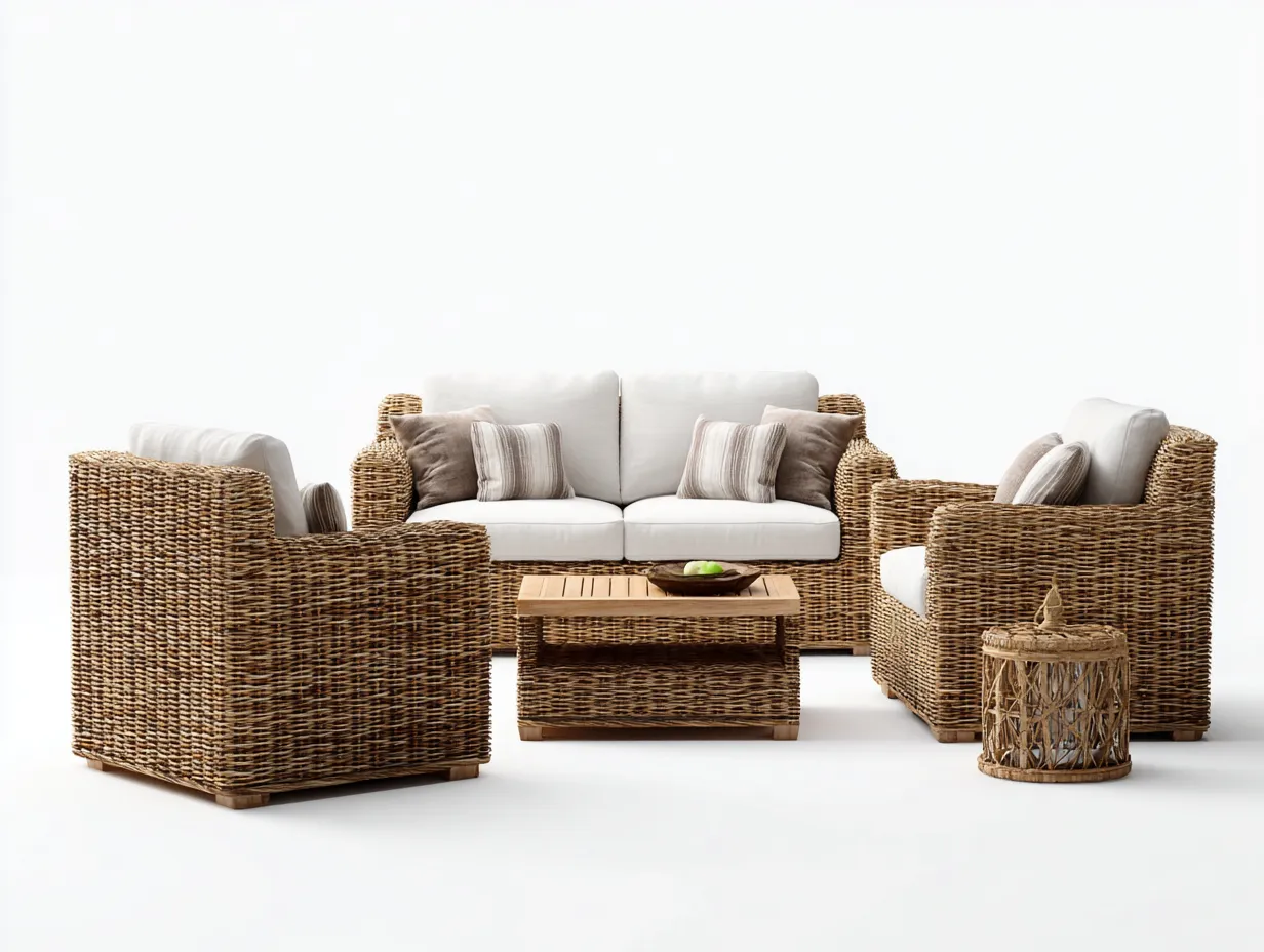 Canapé de jardin en rotin synthétique avec table basse - canapé 175x85x78 cm fauteuil 85x85x78 cm table basse 90x60x35 cm - beige naturel - style extérieur contemporain