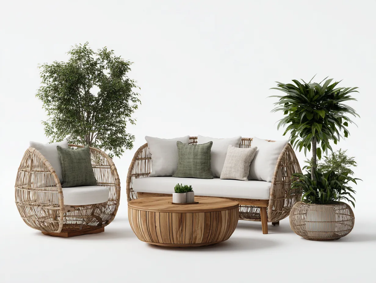 Canapé de jardin en rotin synthétique avec table basse - canapé 180x80x78 cm fauteuil 85x80x78 cm table 80x80x35 cm - beige naturel - style extérieur contemporain