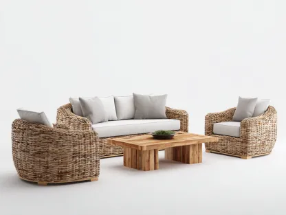 Canapé de jardin en rotin synthétique avec table basse - canapé 180x85x78 cm fauteuil 85x85x78 cm table basse 100x60x38 cm - beige naturel-bois naturel - style extérieur contemporain